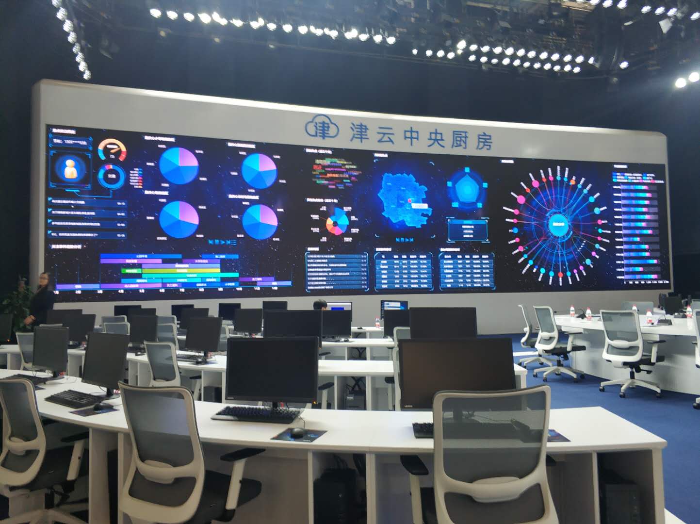 “4×18米数字高清大屏是目前国内媒体中央厨房中最大的,蓝白相间的简洁色调、划分清晰的功能分区……”在“津云”中央厨房的指挥大厅里,讲解员的娓娓道来,让一行人感受到了这里的未来范儿、科技感。